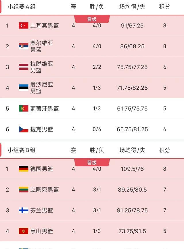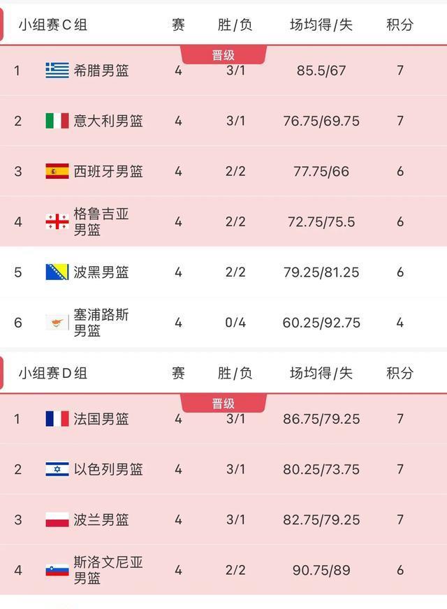 男篮欧锦赛积分榜:四队提前出局,小组第一争夺激烈欧锦赛进入最后一轮争夺,本届欧锦赛以色列与土耳其无疑是最大黑马。5队已出局,C与战况激烈,D组四队已出线。以下是积分榜。