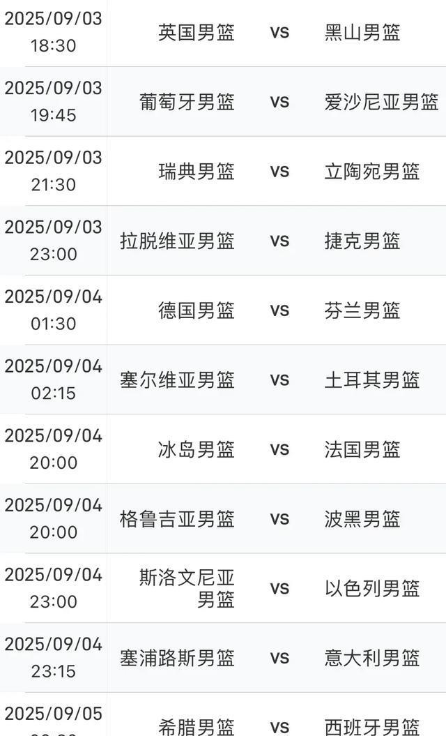 B组:德国男篮四战全胜,立陶宛第二、芬兰第三,今天德国对阵芬兰,立陶宛对阵瑞典,争夺小组第一。英国男篮提前出局。